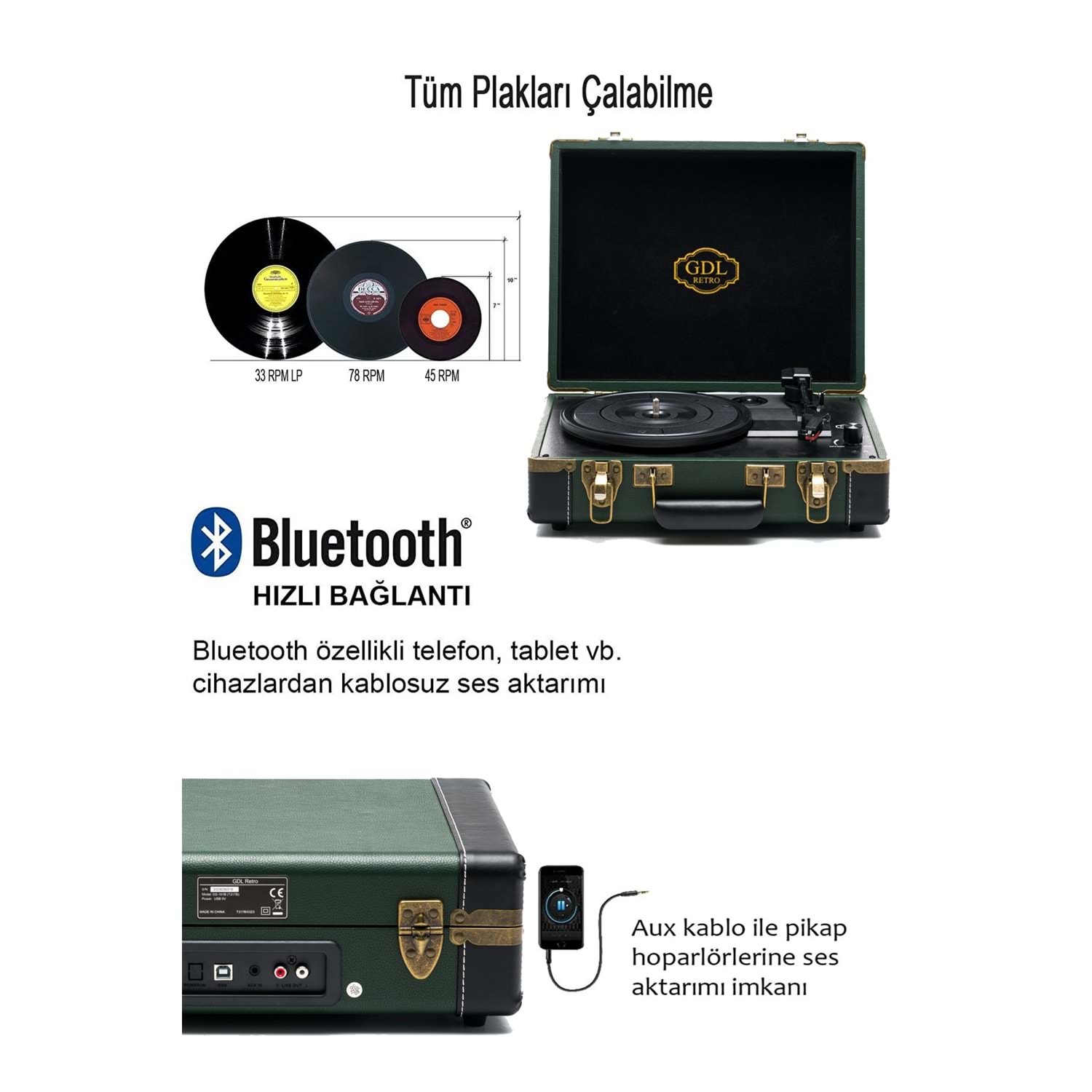 Gdl Retro Çanta Pikap T317B Yeşil (Bluetooth Şarjlı) - Elite
