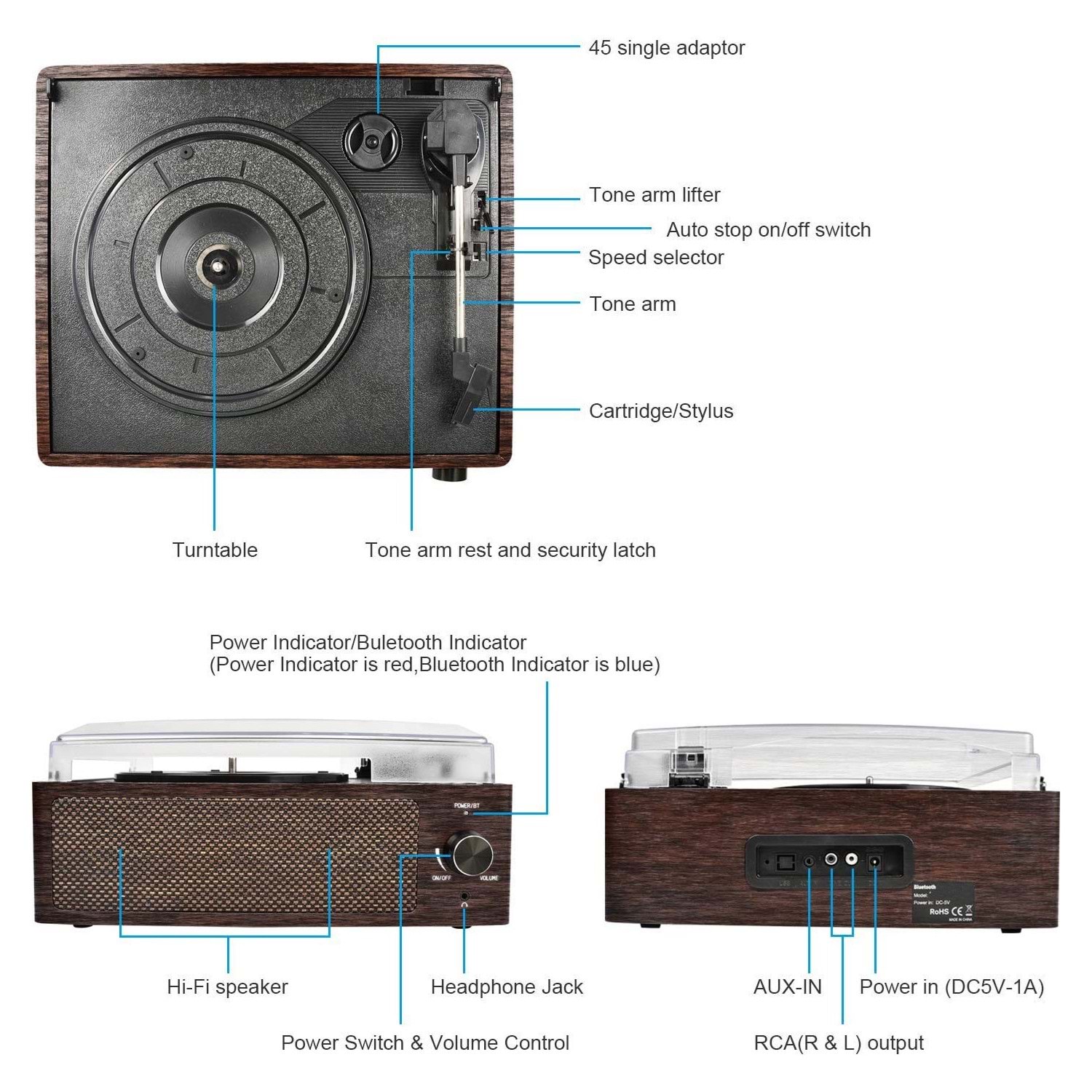 Ktools JOY-K046, taş plaklar da dahil tüm plakları çalabilen bir bluetoothlu pikaptır.