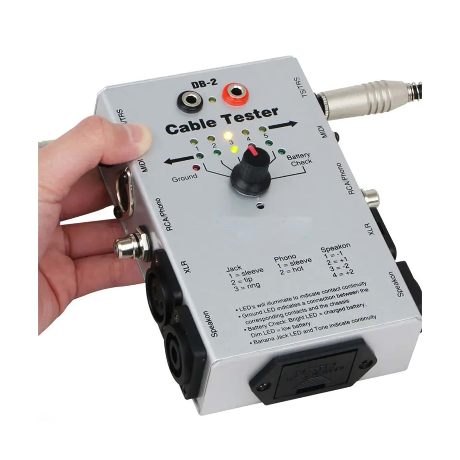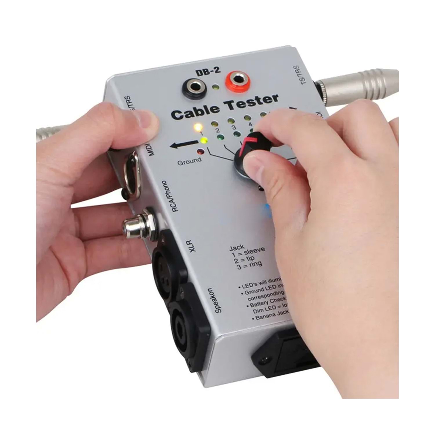 can test the connection lines are: 3-pin XLR connections, 6.35mm instrument cable, RCA connection, 2-core and 4-core speaker cables, banana plug connection, 3-pin and 5-pin plug connection data