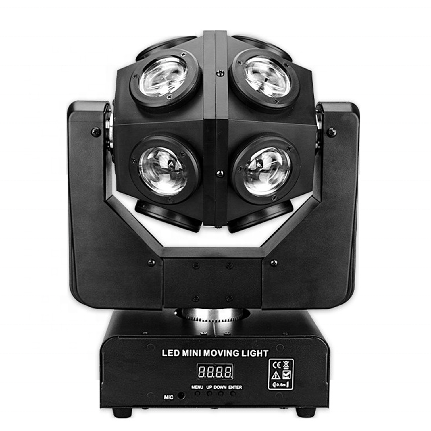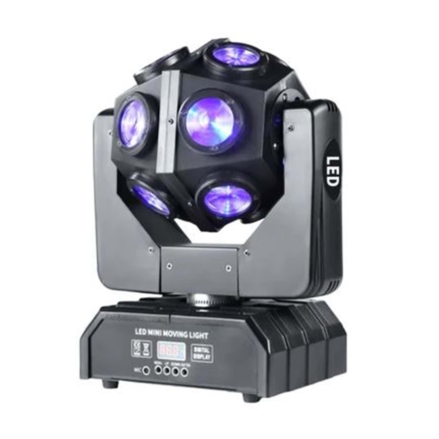 DMX512 kontrol protokolü sayesinde profesyonel masalarla tam uyumlu çalışır. Ayrıca sese duyarlı ve otomatik modları ile operatör gerektirmeden ritme uygun hareket edebilir. IP33 koruma sınıfı ve dayanıklı yapısıyla uzun ömürlü kullanım sağlar.