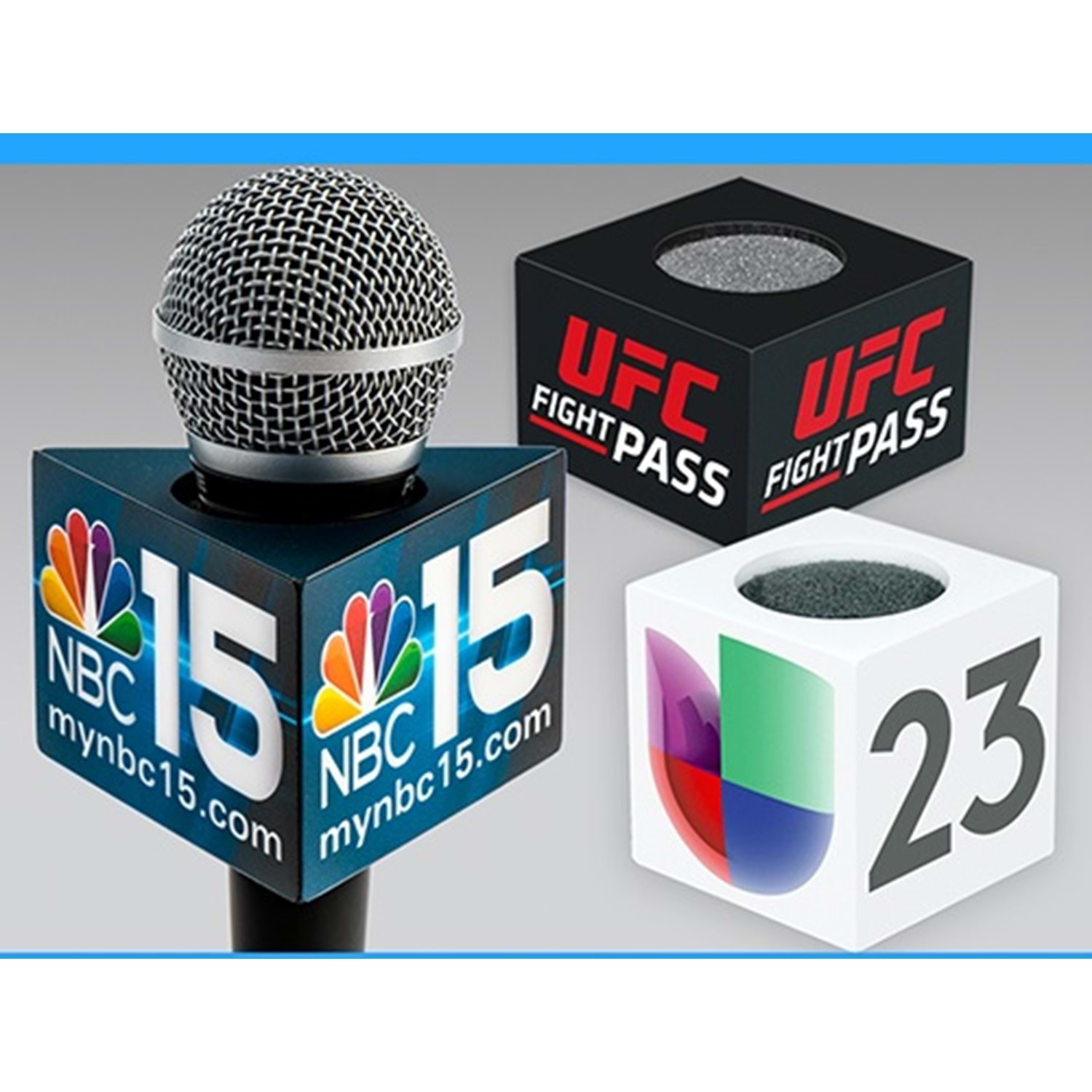 Dikdörtgen mikrofon bayrakları üç standart boyutta gelir veya aynı fiyat için özel bir boyut ister. Impact PBS, tüm mikrofon logolluklar akrilikten oluşur