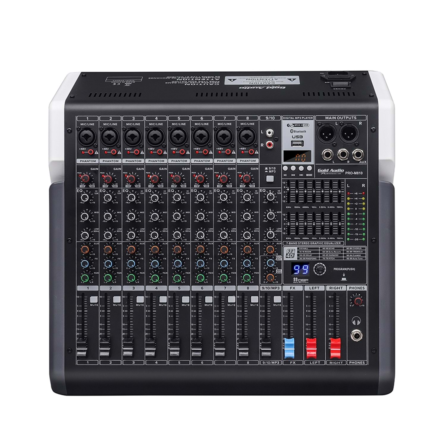 ÜRÜN AÇIKLAMASI 10 Kanal Deck Mikser 8 Kanal Mono (Combo) giriş 2 Kanal Stereo Giriş Stereo Çıkış AUX çıkışı 99 Dijital DSP Efekt Her kanal 3 band Ekolayzır Her kanal mute tuşu USB MP3 Oynatıcı Bluetooth Ses kartı özelliği (Bilgisayardan kayıt) Kayıt özelliği +48V Phantom Power Kulaklık Çıkışı 2 Adet Dual 7 band ekolayzır Aux’lara efekt gönderebilme