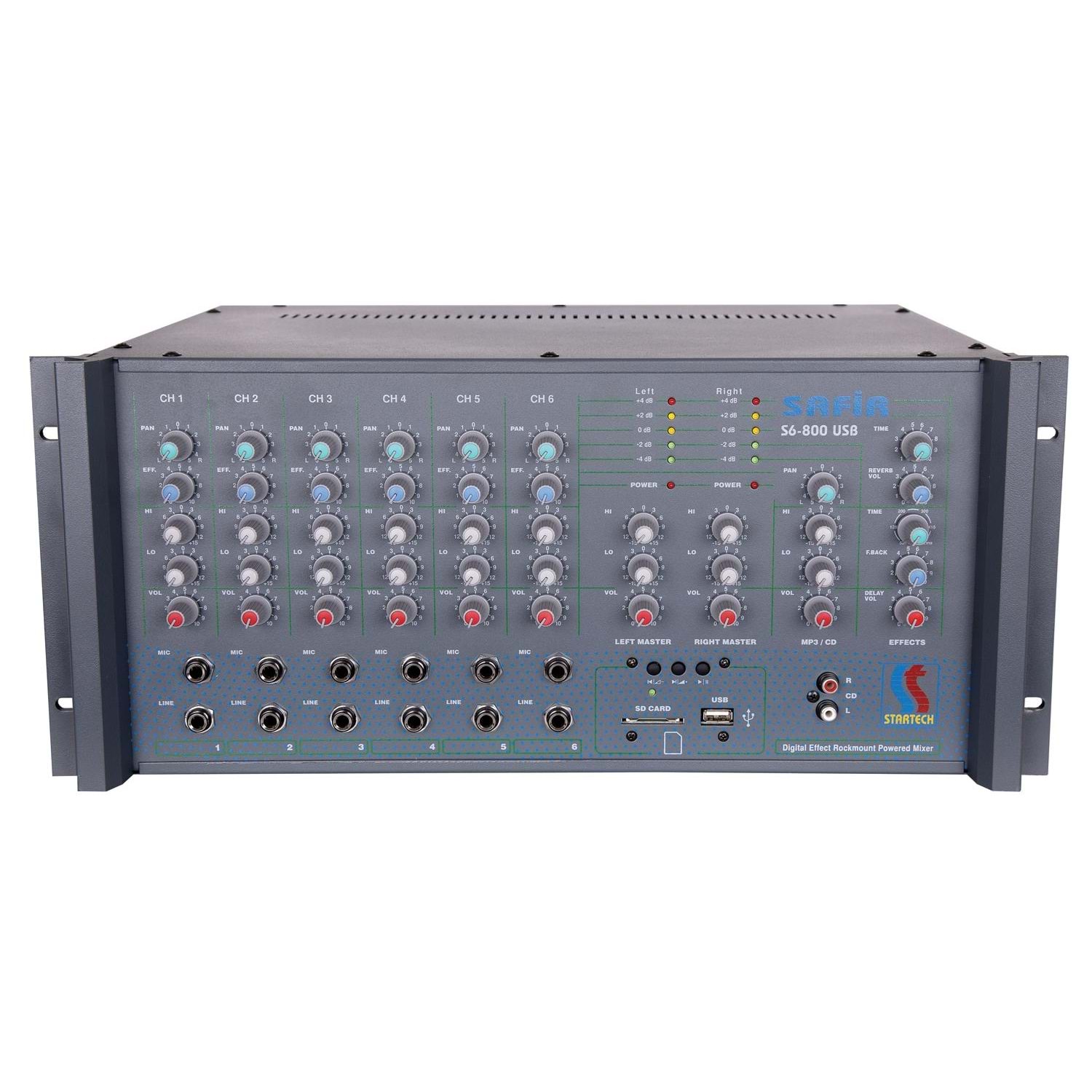 Startech safir sr6-800 anfi, 2x400 watt gücün de ekho ve reverbli stereo anfi modelidir. En ucuz startech sr6 Startech SAFİR SR 6/800 USB Özellikleri 2x400 watt Stereo ( Çift Çıkış) Ekho ve reverb 6 kanal line ve mikr. girişi cami okul ünüversite avm açık ve kapalı alanlardada kullana bilirsiniz cihaz 0dır 2yıl garantilidir