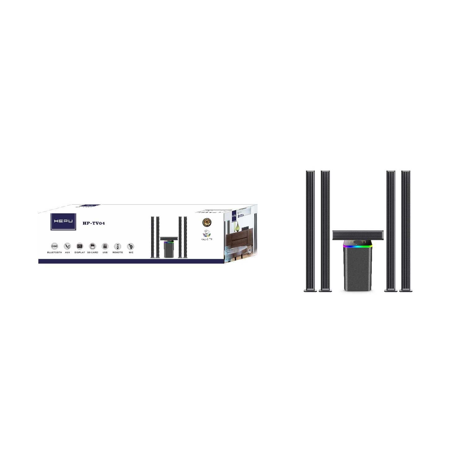 Modern tasarımıyla her ortama estetik bir görünüm kazandırır. Soundbar hoparlörler amfiye kablo ile bağlanır ve gerekli tüm kablolar kutu içeriğinde yer alır. Kumanda ile uzaktan ses kontrolü kolayca sağlanabilir.