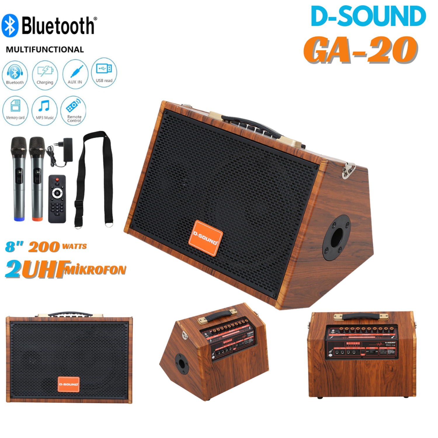 D-SOUND GA-20, 8 inç hoparlör sürücüsü ve 50W ses çıkış gücü ile kompakt tasarımda yüksek ses performansı arayanlar için ideal bir çözümdür. 7.4V 4400mAh kapasiteli bataryası, dış mekanlarda ve elektriğe erişimin olmadığı alanlarda uzun süreli kullanım imkanı sunar.