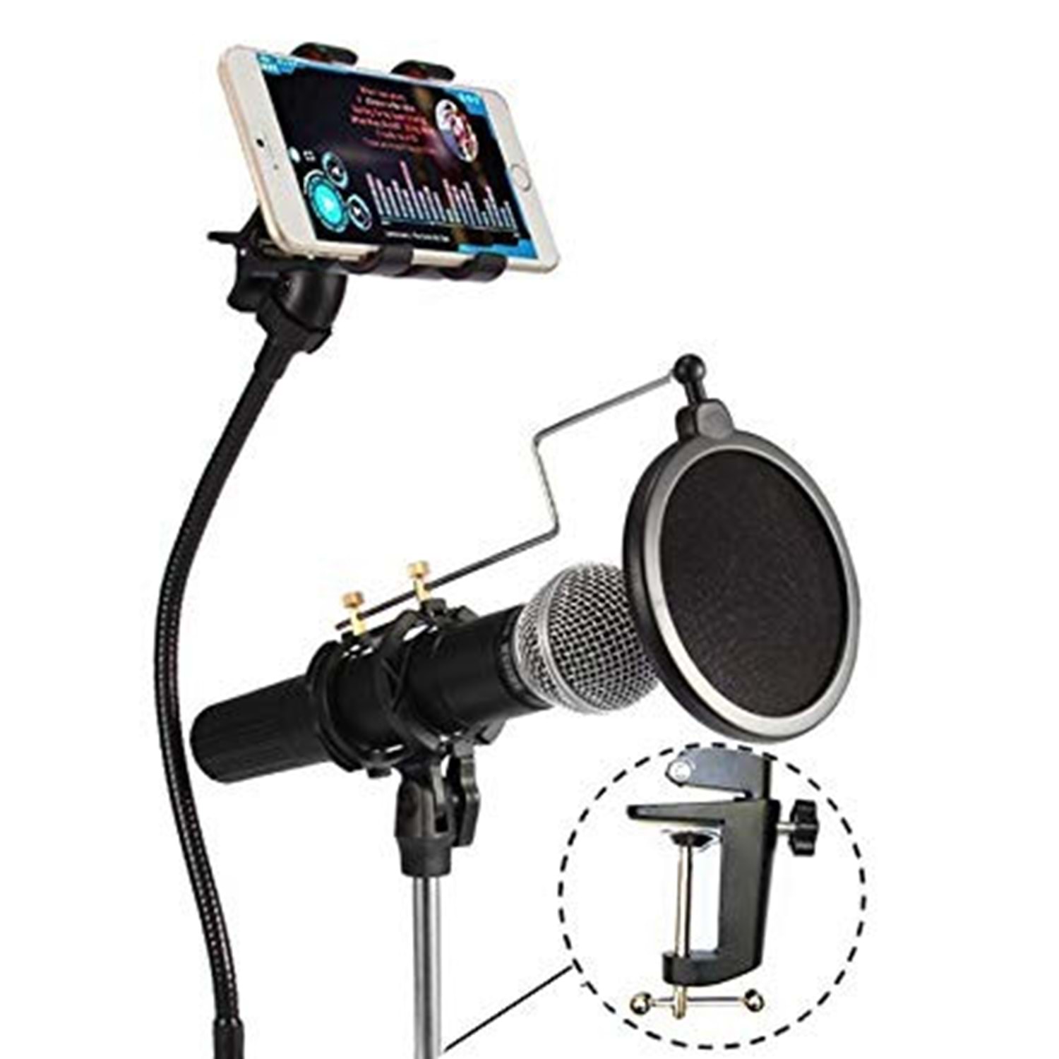 Tripod Metal Mikrofon Yer Standı, 360 Derece Dönebilen Telefon Tutucu (iPhone, Samsung ve Daha Fazlası için), Kayıt için Mikrofon Klipsi ve Pop Filtresi Ön Cam, Yayın, Karaoke, Podcast PENGHANTARAN PERCUMA + BAYAR KETIKA BARANG DITERIMA (COD) (Dalam daerah Johor Bahru sahaja) Sebarang pertanyaan, wassap, call, mesej, 0197970523 için Özellikler: Sağlam ve Dayanıklı: Stant Kiti güçlendirilmiş metalden yapılmıştır ve sarkmadan cep telefonu ve mikrofonu sıkıca tutabilir; Ses Kaydı, Yayın, Telefon Karaoke, Podcasting Zemin Standı için mükemmel: Ayarlanabilir yüksekliği 30-50 inç / 75-127 santimetre; Hafif ve Dayanıklı servis ömrü; Katlanabilir Lastikli Ayaklar zemin titreşimlerini azaltabilir; Sağlam kilitleme yetenekleri, 25.6 inç / 65 santimetre Bom Kolu gerçekleştirirken mikrofonunuzun güvenliğini sağlar: Mükemmel sesinizi göstermek için performans sergilerken kullanıcıların bom yüksekliğini (180 Derece Ayarlanabilir) ayarlamasına izin verin 360 Derece Dönen Telefon Tutacağı: Maks. Telefon Çapı (genişlik) 5,7 inç / 14,5 santimetre; Piyasadaki iPhone, iPad mini, Samsung, HTC, Blackberry, LG, ZTE, Xiaomi gibi çoğu Akıllı Telefonu destekler. 360 Derece Dönen Mikrofon Klipsi ve Pop Filtresi: Maks. Mikrofon Klipsi Çapı 1,26 inç / 32 milimetre; El mikrofonları ve dinamik mikrofonlar için uygundur; Blue Yeti USB Mikrofon için uygun DEĞİLDİR; Mikrofon ve akıllı telefon dahil değildir Not: 1. Mikrofon ve akıllı telefon dahil değildir; 2. Mavi Yeti USB Mikrofon için Uygun DEĞİLDİR; 3. Maks. Telefon Çapı (genişlik) 5,7 inç / 14,5 santimetre ve Maks. Mikrofon Klipsi Çapı 1,26 inç / 32 milimetre. Açıklamalar: Stant Kiti, güçlendirilmiş metalden yapılmıştır ve cep telefonunu ve mikrofonu sarkmadan sıkıca tutabilir. Ses Kaydı, Yayın, Telefon Karaoke, Podcasting için mükemmeldir. Zemin Standı: Ayarlanabilir yükseklik 30-50 inç / 75-127 santimetre; Hafif ve Dayanıklı servis ömrü; Katlanabilir Lastikli Ayaklar zemin titreşimlerini azaltabilir; Sağlam kilitleme yetenekleri, Boom Arm gerçekleştirirken mikrofonunuzun güvenliğini sağlar: Mükemmel sesinizi göstermek için performans gerçekleştirirken kullanıcıların bom yüksekliğini (180 Derece Ayarlanabilir) ayarlamasına izin verin 360 Derece Dönen Telefon Tutacağı: Maks. Telefon Çapı (genişlik) 5,7 inç / 14,5 santimetre; Piyasadaki iPhone, iPad mini, Samsung, HTC, Blackberry, LG, ZTE, Xiaomi gibi çoğu Akıllı Telefonu destekler. 360 Derece Dönen Mikrofon Klipsi ve Pop Filtresi: Maks. Mikrofon Klipsi Çapı 1,26 inç / 32 milimetre;