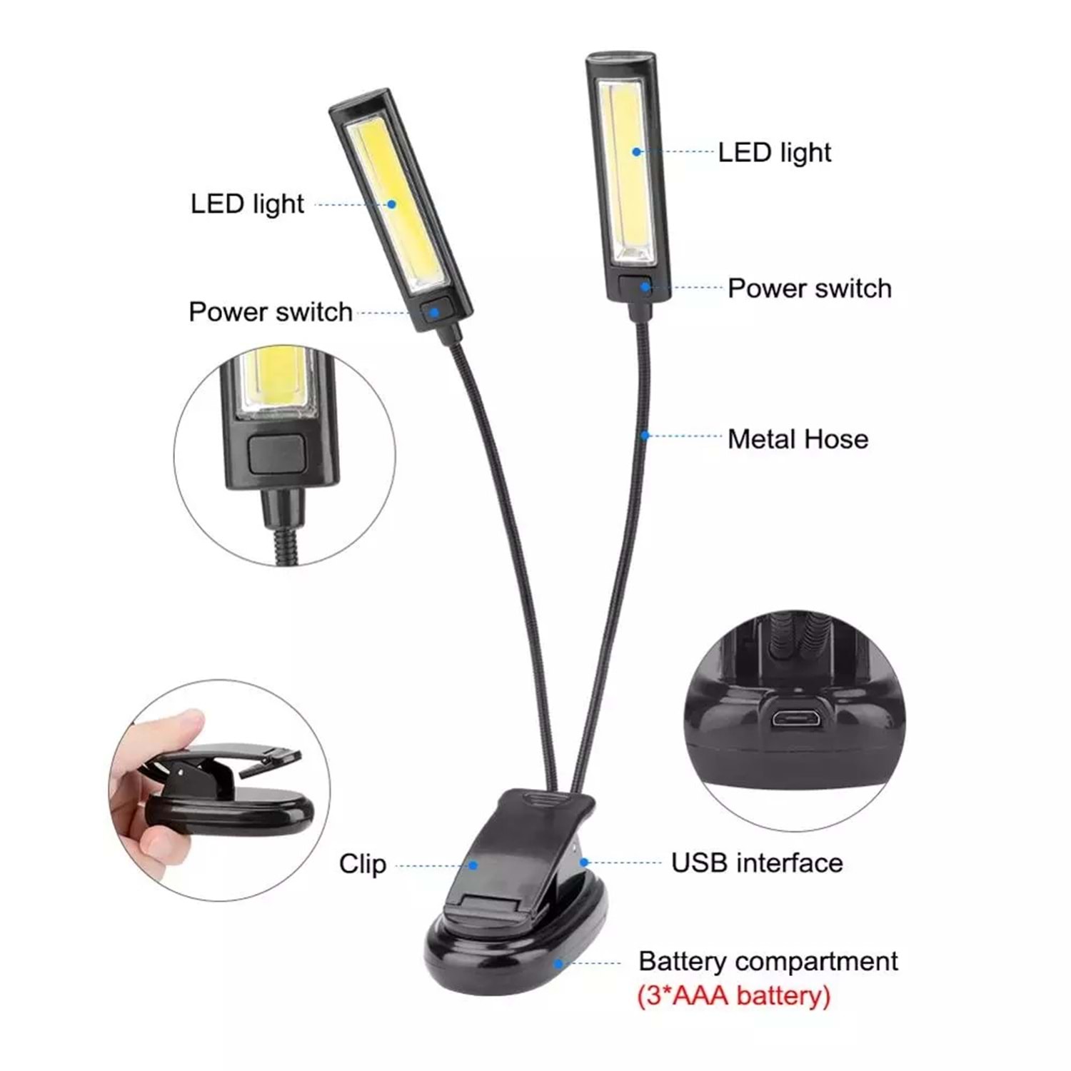 Bilgisayar USB girişi ile şarj edebilir veya 3 adet AAA pil ile çalıştırabilir bu sayede lambayı farklı yerlerde kolayca kullanabilirsiniz.
