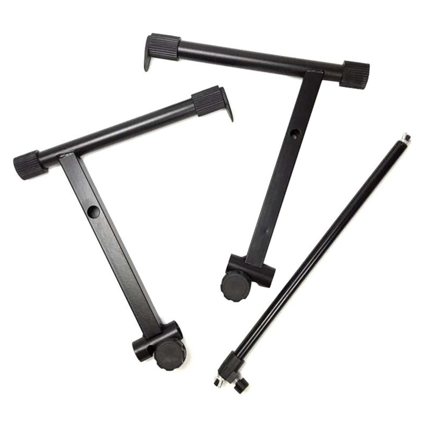 In addition to the support straps, the top and bottom bars of the keyboard stand have rubber end caps to further prevent slippage.