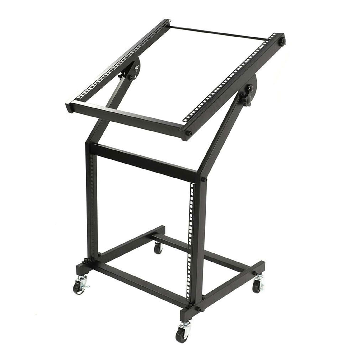 Studio Rack Stand, profesyonel ses sistemleri ve stüdyo kurulumları için tasarlanmış, toplam 19 ünitelik kapasiteye sahip dayanıklı bir ekipman sehpasıdır. Alt bölümde yer alan 9 ünitelik dikey raylar ve üst bölümde bulunan 10 ünitelik eğimli platformu sayesinde mikser ve rack tipi cihazlarınızı en ergonomik şekilde konumlandırmanıza olanak tanır.