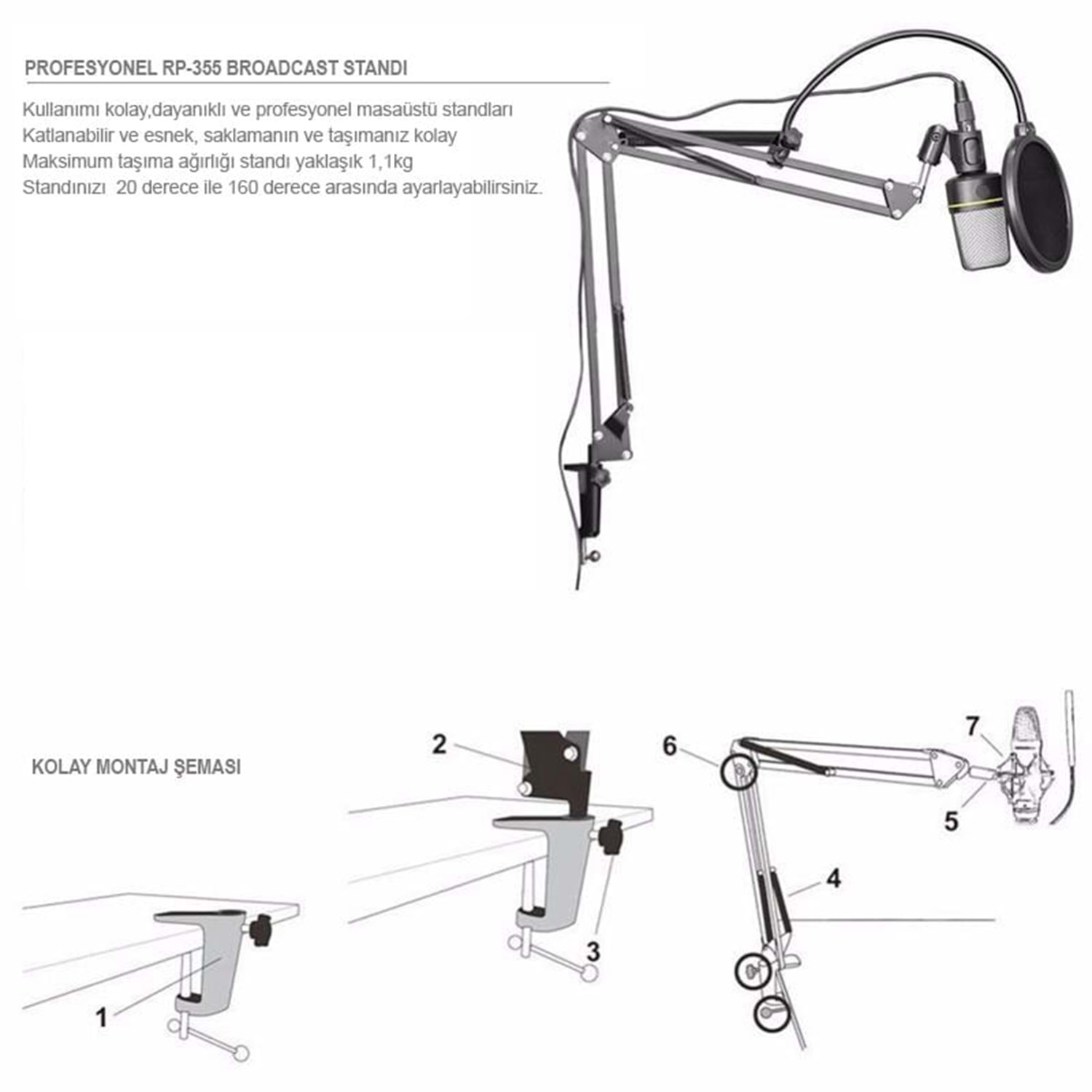*OXID CONDENSER KAYIT MİKROFONU ( 3,5mm Kablosu ile direk notebook giriş yaparak Youtube veya canlı Chat yapabilirsiniz,XLR-XLR kablosu ile Ses kartı veya Mixere ile kullanabilirsiniz)